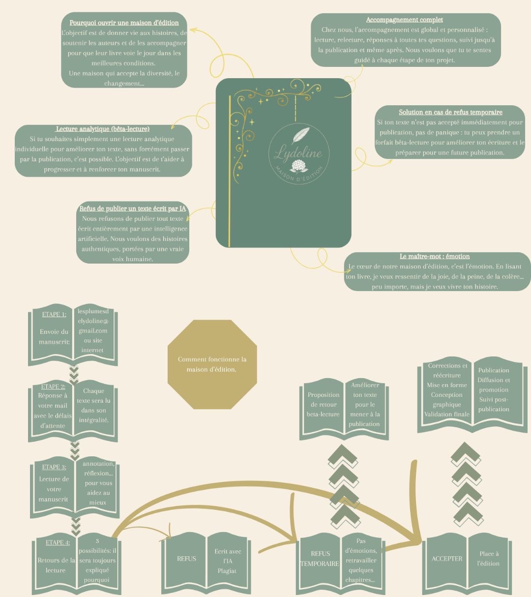 - Co-création: L’auteur(e) participe aux étapes importantes (titre, résumé, couverture…) via moodboard et échanges constants.